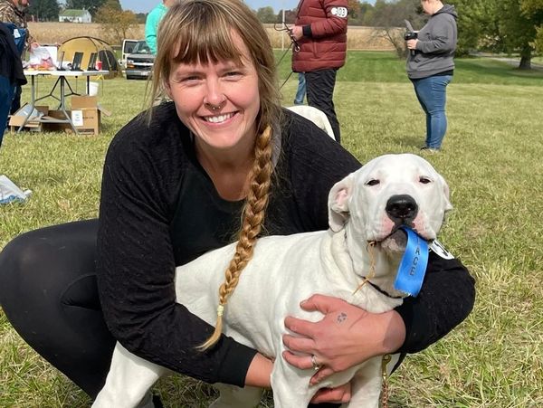 Katie has been surrounded by dogs her entire life. Raised with Dogue de Bordeaux (French Mastiffs), her passion for animals began early. Her mother was an active breeder, show handler, working dog trainer, and rescue advocate, so from the time Katie could walk, she was confidently handling full-grown male Bordeaux and learning to observe, train, and care for dogs of all breeds and temperaments.